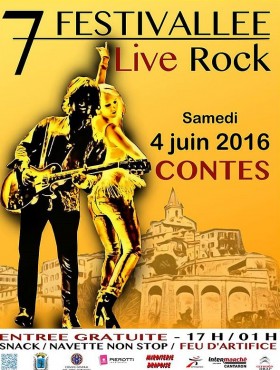 Un rendez-vous à ne pas manquer, le Samedi 4 Juin 2016, CONTES accueillera grâce à l’association MUSIC-EMOTION le 7ème FESTIVALLEE-ROCK, au Théâtre de Verdure (06390) dans la vallée du paillon, toujours en plein air et dans l’esprit « Woodstock ». Une programmation de choix avec 10 groupes !